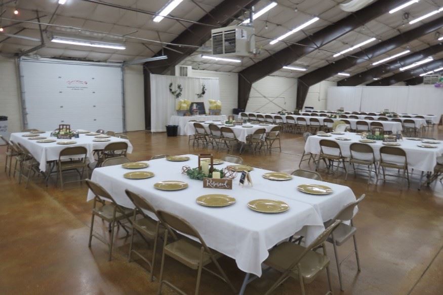 This building is equipped with a kitchen area (for prepared foods-refrigerator, microwave, and sinks) and newly remodeled restrooms.